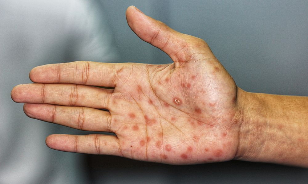 Thanh niên 19 tuổi tại Đài Loan mắc giang mai giai đoạn hai sau thời gian chủ quan bỏ qua các vết loét không đau vùng kín và chỉ đi khám khi lòng bàn tay nổi ban đỏ kèm sốt kéo dài.